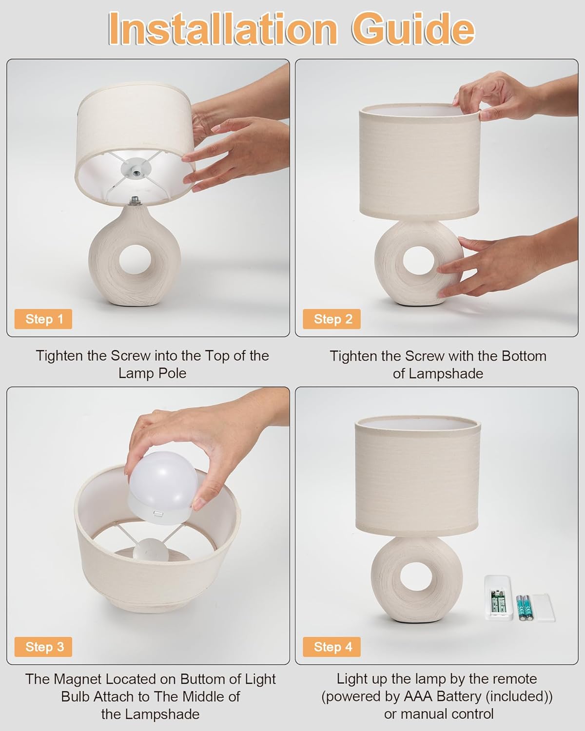 - Superior Quality & Unique Design: Crafted with carefully selected high-quality ceramic and the fabric lampshade, this boho ceramic table lamp is designed for long-lasting use and effectively resists scratches and fading, always maintaining its elegant and captivating appearance. We have designed the base of the bedside lamp to be a hollow circular shape, which looks like an exquisite and unique vase. It not only illuminates your home but also adds an artistic atmosphere to your space