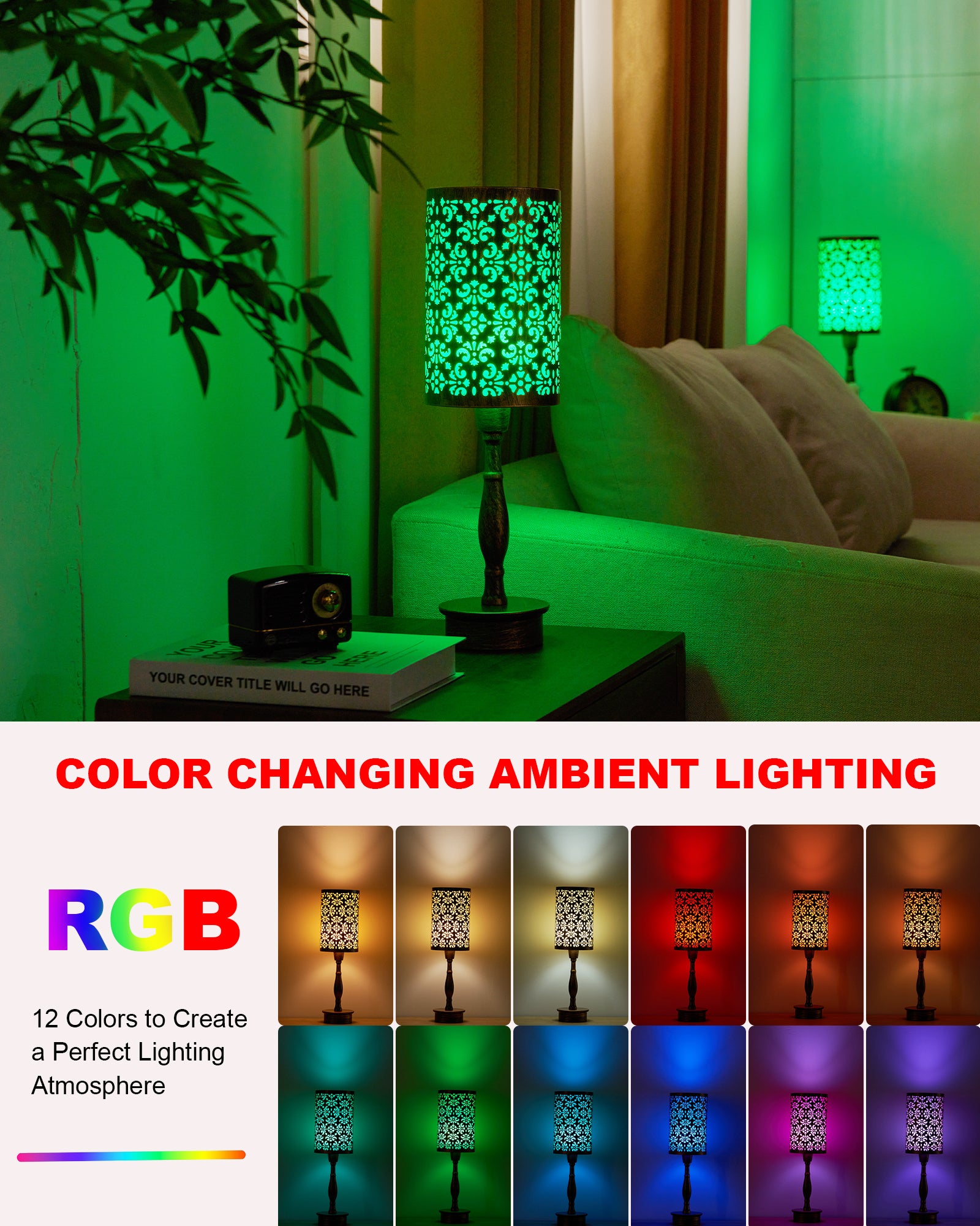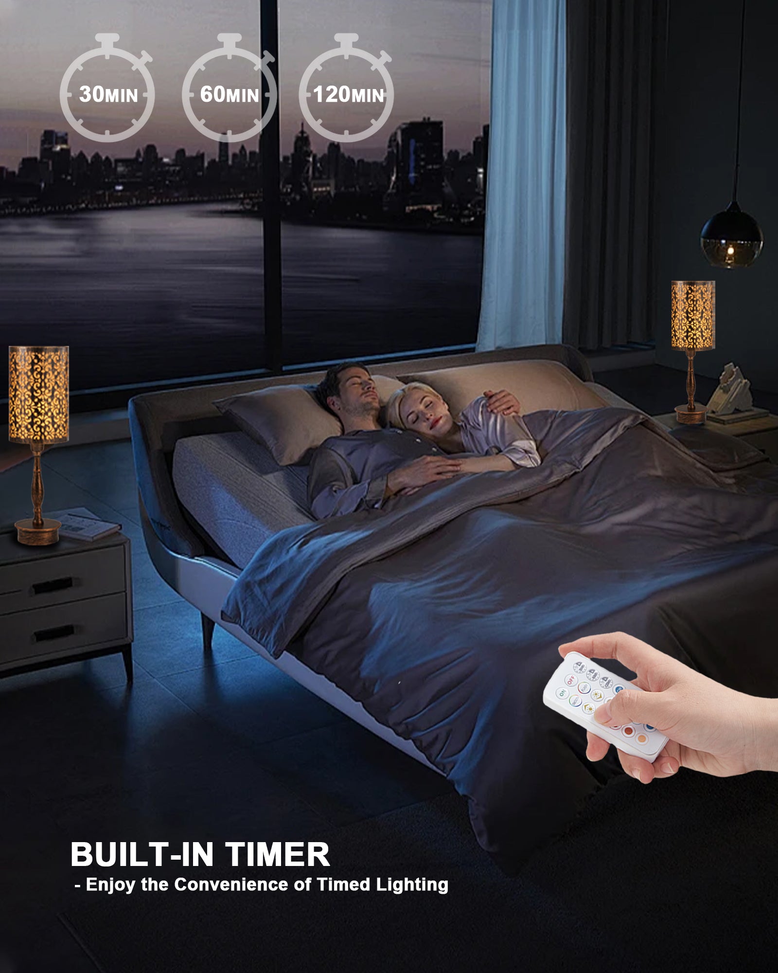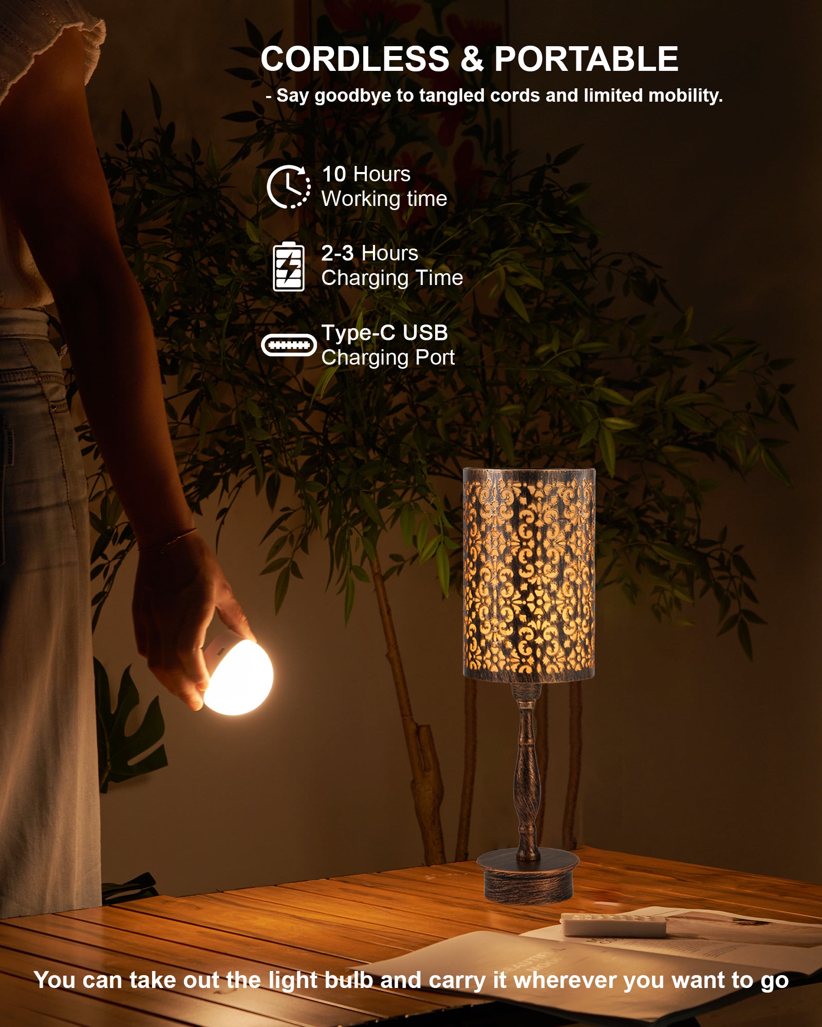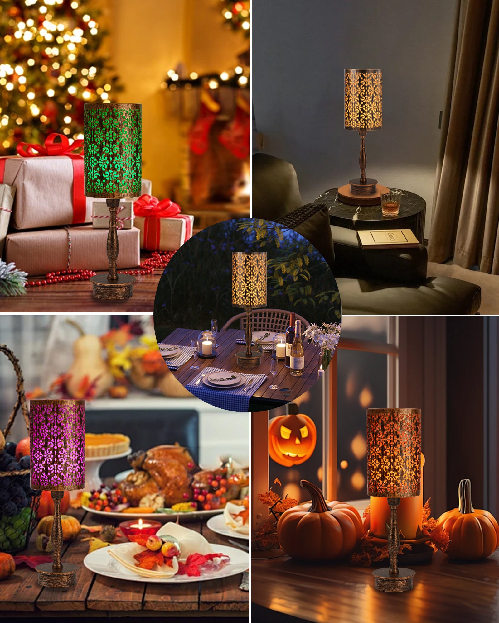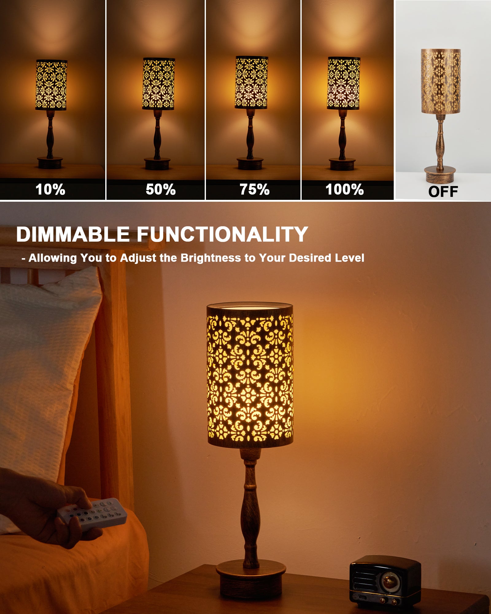 - Distinctive, Ambient Lighting - The decorative USB desk lamp with its brass design, black metal shade, and flower pattern enhances any space. Perfect for living rooms, bedrooms, home offices, or outdoor camping (dresser desk windowsill corner side entryway end table bookshelf table), it serves as both functional lighting and a decorative piece. The dimmable lamp is an ideal gift for your friends and family