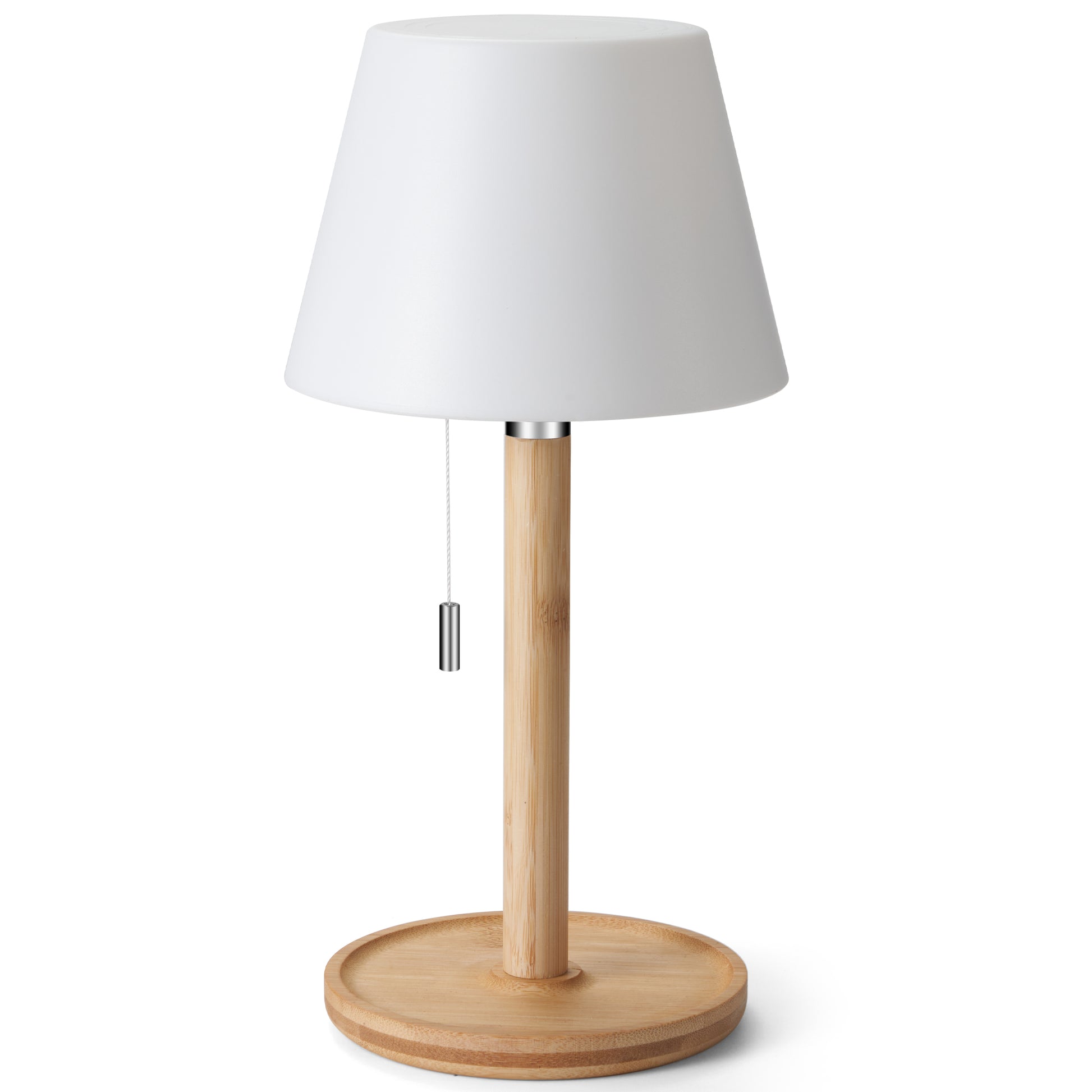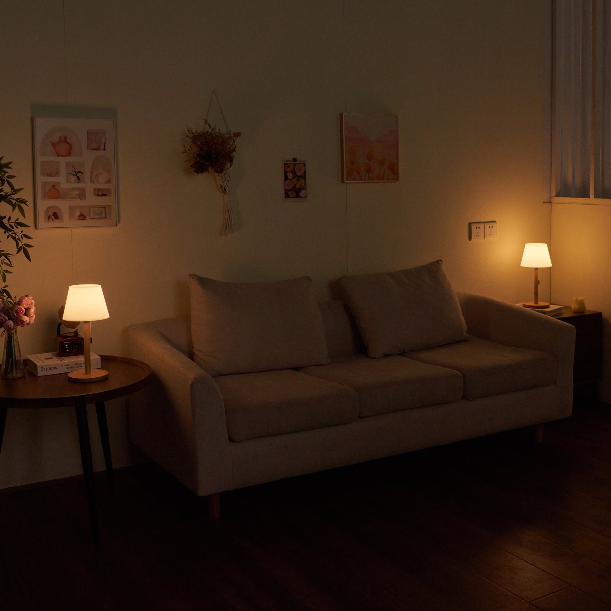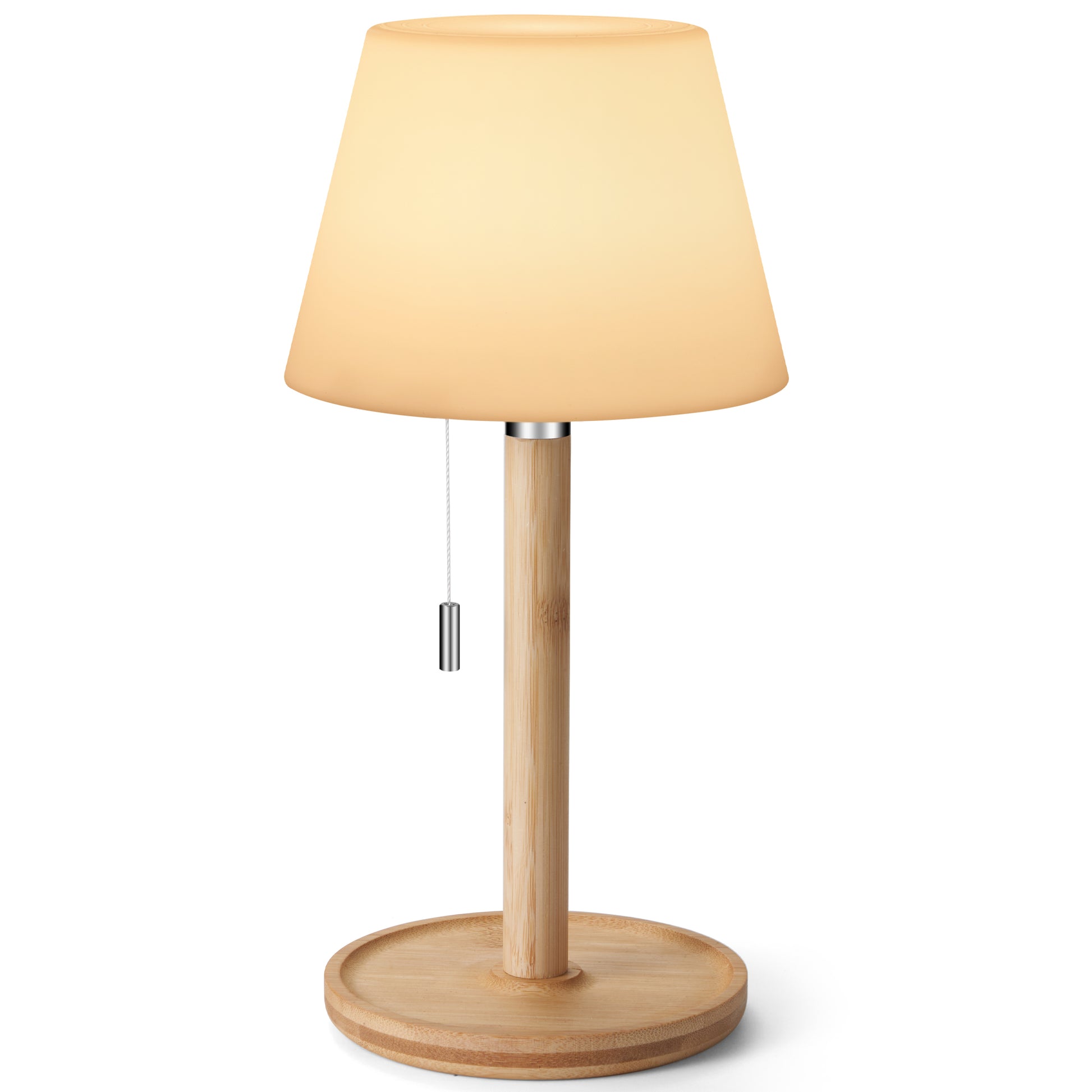 - Modern Minimalist: Minimalist shade design and expertly crafted wooden base perfect the texture of the table lamp. The cordless waterproof table lamp with dimensions set about 3.93 x 5.1 x 11.8 in is compact. Its compact design allows for seamless integration into your tables, side tables, patio, outdoor, bathroom shelf, or countertops, offering ample light without taking up too much space